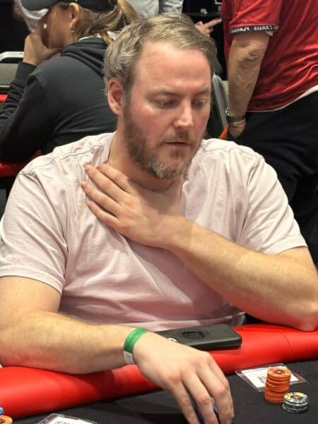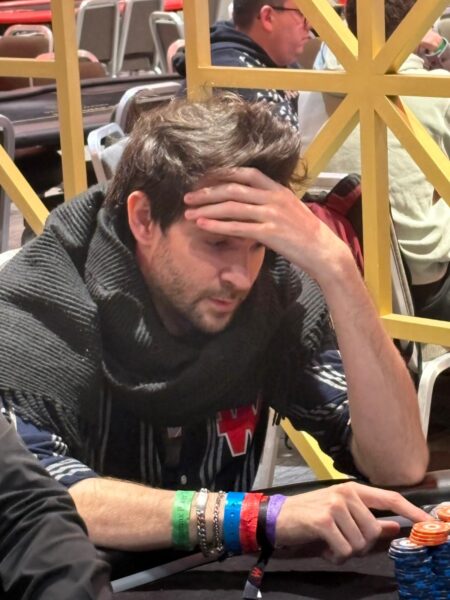 Maintenant, place au High Roller, et autant vous dire qu’on change d’ambiance. Autour des tables, beaucoup de joueurs très expérimentés, dont Gus Hansen, Pierre Calamusa, Alexandre Reard, Sonny Franco, Cécile Ticherfatine, ou encore Romain Lewis, qui est allé buy-in le tournoi juste après son élimination sur le Main Event !