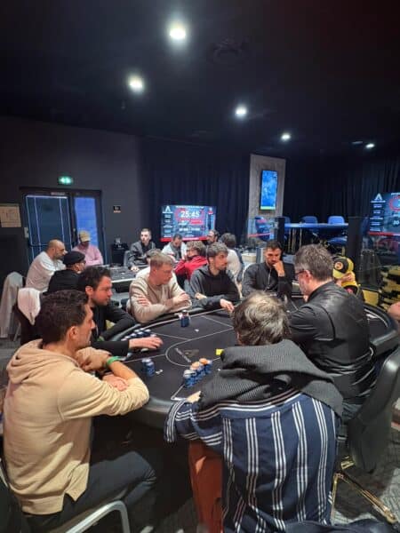 Le tournoi est déjà rendu au niveau 8, et les inscriptions tardives sont possibles jusqu’au niveau 14. À noter qu’un Day 2 aura lieu demain à partir de 12h30. En attendant, il faut batailler pour aller chercher sa qualification. Pour l’instant, 277 joueurs ont réglé les 1000 € requis pour disputer le tournoi. L’average est à 274.000 jetons, et les blindes ont atteint 3000/6000.